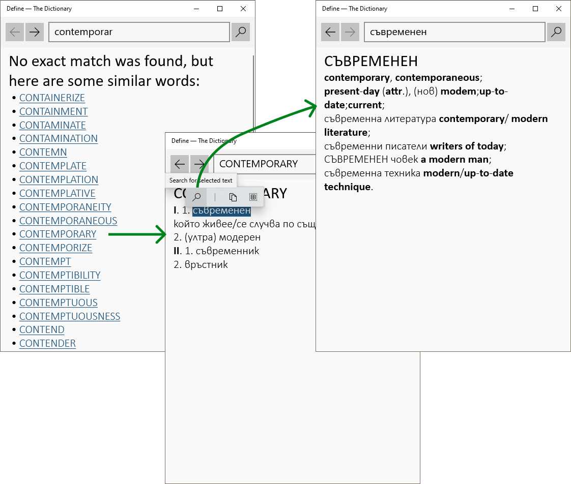 Contemporary and lightweight offline Bulgarian-English and English-Bulgarian dictionary. Страницата на български.